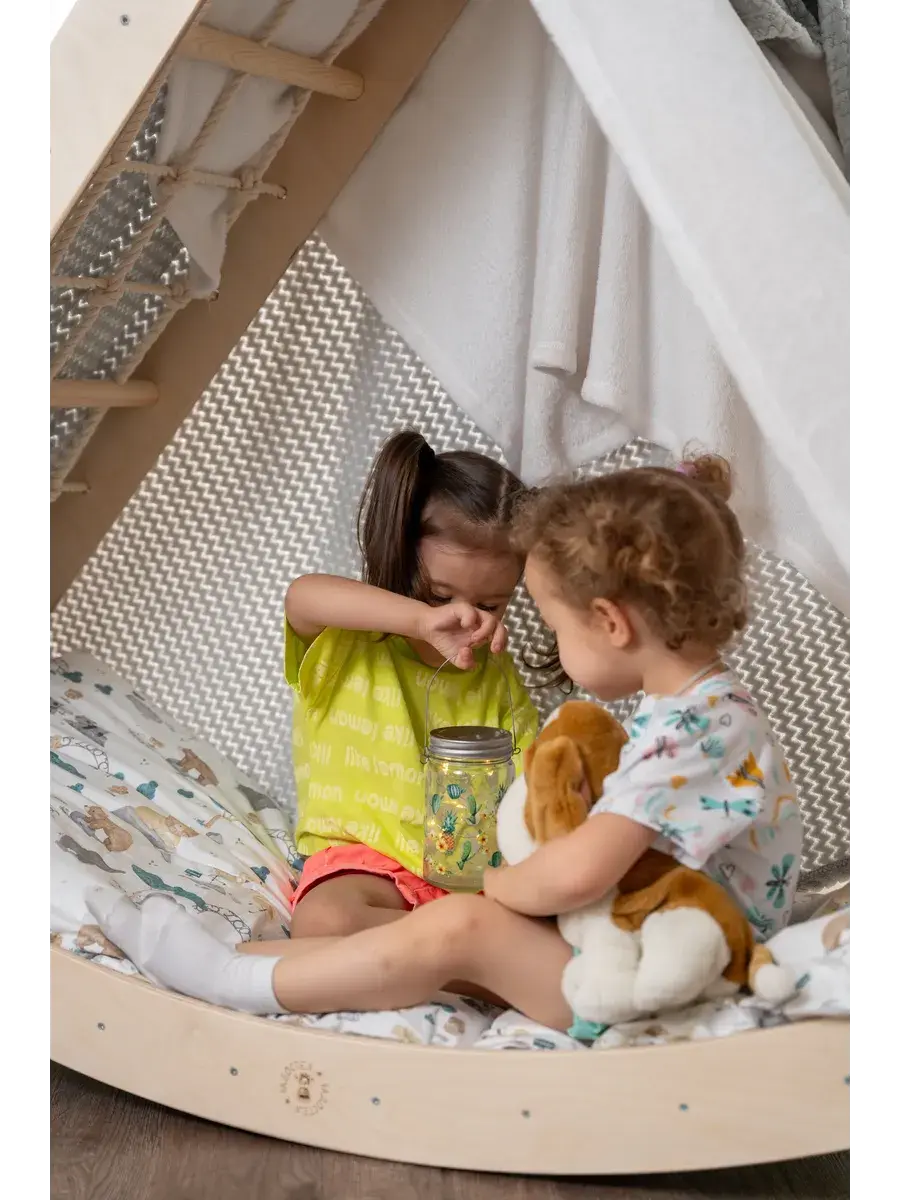 Высота горки подобрана так, чтобы на ней было безопасно и интересно играть детям от 2 лет и старше, а родителям комфортно помочь малышу освоить новые навыки. При необходимости освободить игровое пространство «Зямка» легко складывается для хранения.