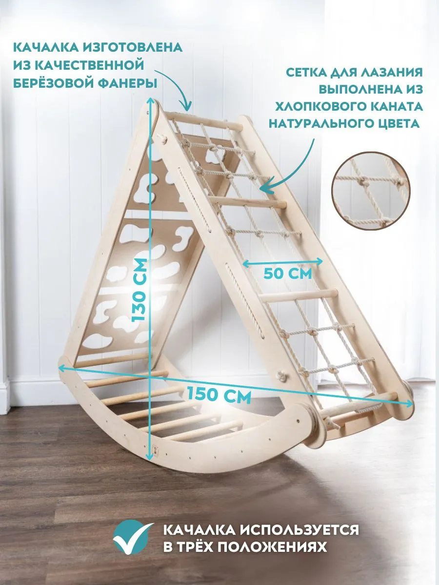 3.Универсальность: Сочетая в себе треугольник Пиклера, верёвочную лестницу, скалодром и качалку, наш комплекс идеально подходит как для игр, так и для обучения. Он станет центром притяжения для детей, предлагая разнообразные физические задания и активности.